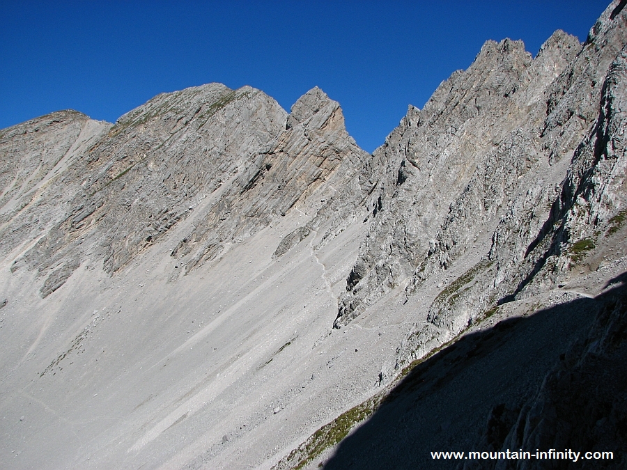 Von der Mandlscharte beginnt der Abstieg zur Arzlerscharte und weiter zur Pfeishütte (1922 m).