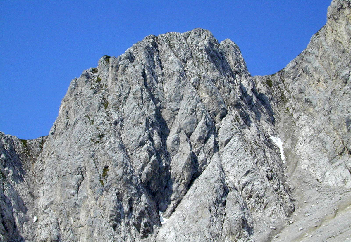 Wir haben jetzt die Hafelekar Spitze (2334 m) erreicht und befinden uns geologisch gesehen im Riffbereich des Wettersteindolomits.