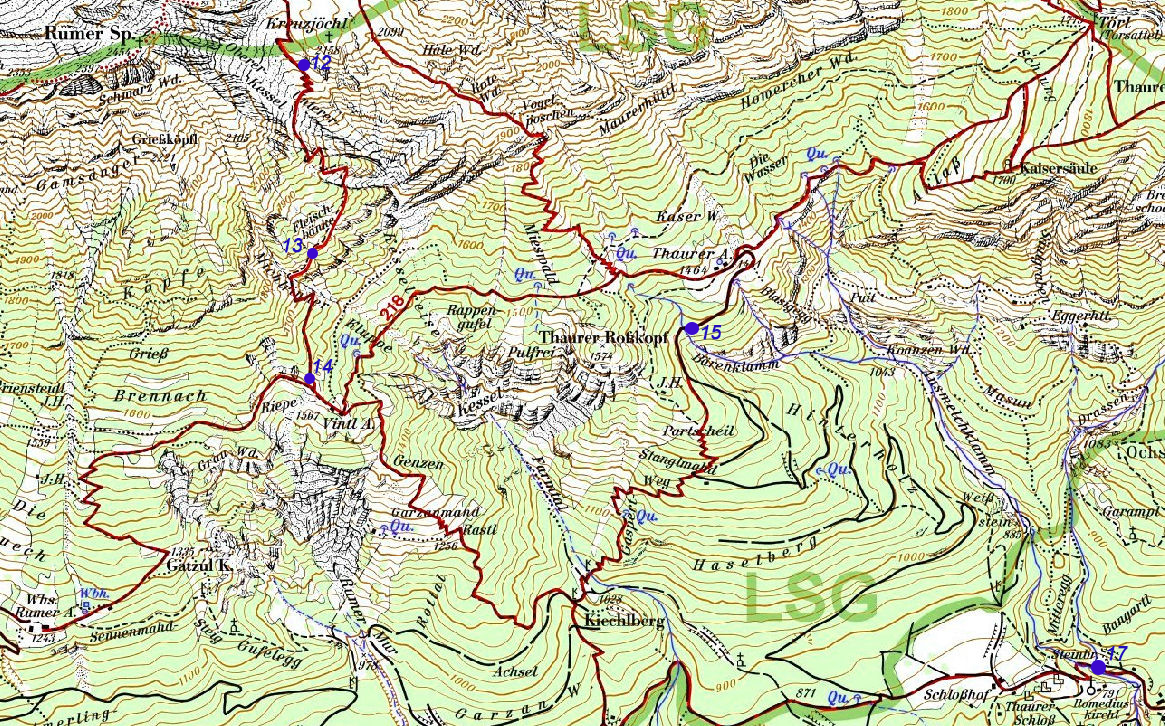 Für den Abstieg nach Thaur (1300 Höhenmeter) ist eine gute Kondition gefragt. Um bei den vielen geologischen Beobachtungen nicht die herrliche alpine Flora